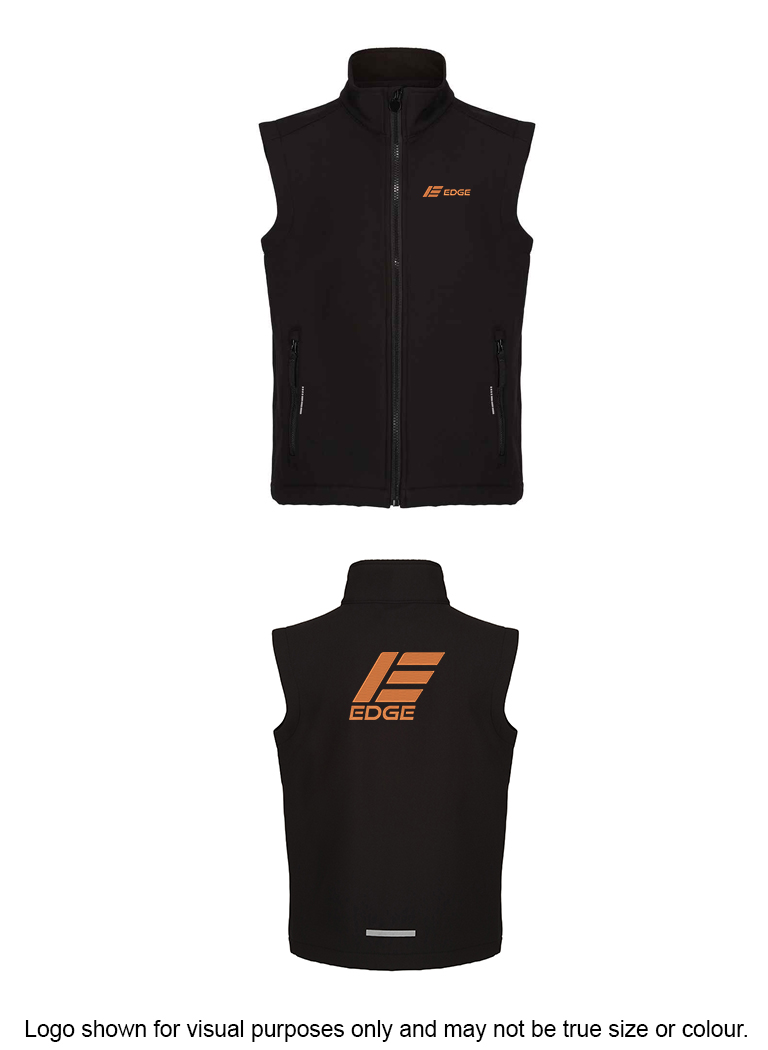 Our classic Edge Kids Soft Softshell Body Warmer with embroidery design, a must have for any occasion.